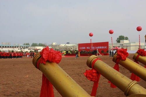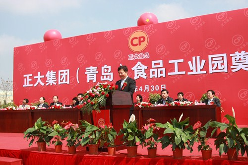 奠基儀式由正大集團資深總裁李瑞寒先生主持。儀式第一項由正大集團資深副董事長于建平先生介紹項目情況,他說:“正大集團(青島)食品工業園項目,計劃總投資12億元人民幣,規劃新建3個食品加工廠,擴建1個加工廠及相應配套的生產、生活設施,總建筑面積2.2萬平方米,生產油炸、香腸、面食、米飯等新產品。2013年建成后,可形成各類新產品年產能4.3萬噸、年銷售收入30億元人民幣。正大集團(青島)食品工業園的興建,將是在這片神奇的土地上,崛起的一座更適應生產、生活的現代化的新食品工業園區,一個可持續發展的、新的經濟增長點。”儀式第二項由即墨市鄭德雁市長致辭。儀式第三項由青島市、即墨市、正大集團的各位領導為正大集團(青島)食品工業園揮鍬奠基。