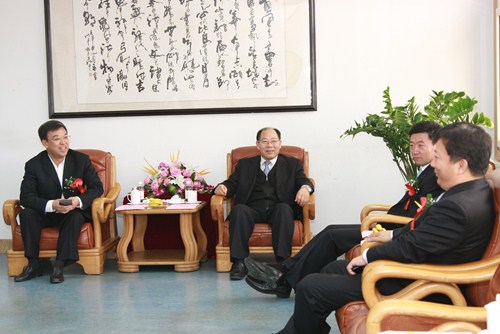 (正大集團資深副董事長于建平和青島市檢驗檢疫局局長李鳳貴、 即墨市委書記劉贊松、即墨市市長鄭德雁在一起親切交談)